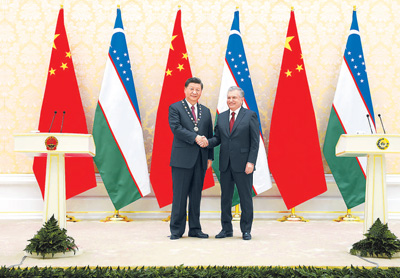 習近平接受烏茲別克斯坦總統(tǒng)米爾濟約耶夫授予“最高友誼”勛章
