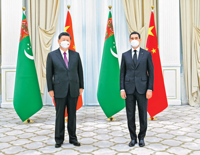 習(xí)近平強(qiáng)調(diào),雙方要做大兩國天然氣合作的體量和規(guī)模,為兩國發(fā)展振興注入新動力。要加快推進(jìn)非資源領(lǐng)域合作,推進(jìn)共建“一帶一路”倡議同土方“復(fù)興絲綢之路”戰(zhàn)略對接。盡早落實互設(shè)文化中心,為兩國人文交流搭建新平臺。中方愿早日在土庫曼斯坦設(shè)立魯班工坊,同土方繼續(xù)加強(qiáng)抗疫合作。中方愿同土方加強(qiáng)“中國+中亞五國”會晤機(jī)制內(nèi)合作,落實全球發(fā)展倡議和全球安全倡議,密切國際協(xié)作,維護(hù)廣大發(fā)展中國家共同利益,為促進(jìn)世界和平與發(fā)展作出貢獻(xiàn)。