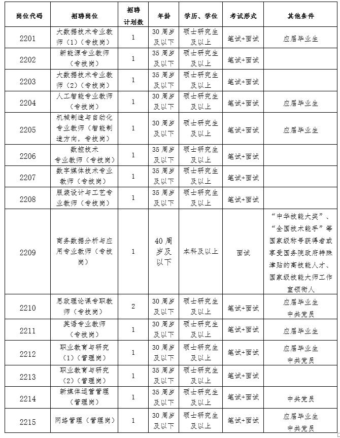 具體條件見附件1《天津輕工職業(yè)技術學院2023年(第一批)招聘計劃表》