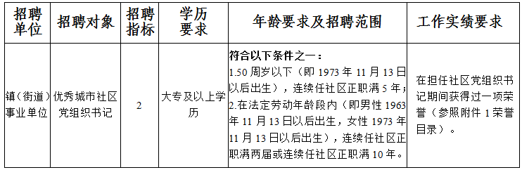招聘對(duì)象為鄞州區(qū)管轄(不含梅墟街道、新明街道、聚賢街道)現(xiàn)任城市社區(qū)黨組織書記(含產(chǎn)業(yè)型社區(qū)黨組織專職副書記)。報(bào)考人員應(yīng)具備公告及崗位規(guī)定的基本條件和資格條件: