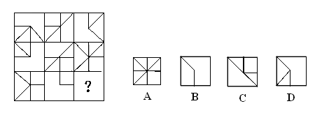 第一種題型:圖形推理。每道題給出一套或兩套圖形,要求應(yīng)試者認(rèn)真觀察找出圖形排列的規(guī)律,選出符合規(guī)律的一項(xiàng)。