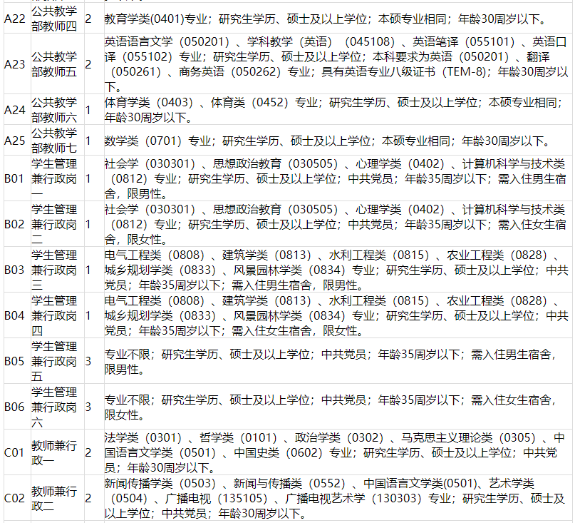 ?。ǘ┱衅笉徫粭l件中的學(xué)科專業(yè)按照《學(xué)科專業(yè)目錄匯編》(見附件),專業(yè)名稱后括號(hào)中的數(shù)字為學(xué)科專業(yè)代碼。報(bào)考人員所學(xué)專業(yè)名稱和代碼必須與招聘崗位要求相同,請(qǐng)?zhí)貏e注意區(qū)分學(xué)術(shù)碩士和專業(yè)碩士代碼。專業(yè)名稱和代碼參照《學(xué)科專業(yè)目錄匯編》。