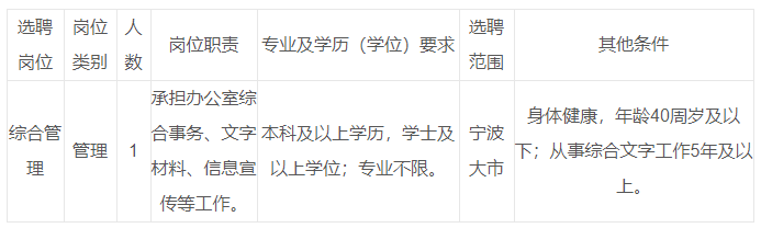 寧波市機(jī)關(guān)事務(wù)管理局直屬事業(yè)單位公開選聘工作人員公告