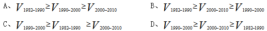 用分別表示四次人口普查間的全國勞動年齡人口年均增長率,下列關(guān)系正確的是( )