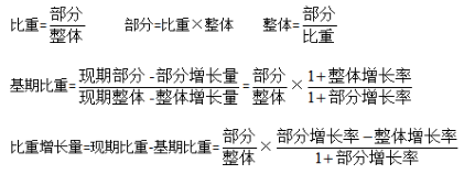 當(dāng)比較現(xiàn)期比重和基期比重時(shí),只需比較部分增長(zhǎng)率和整體增長(zhǎng)率之間的大小關(guān)系。