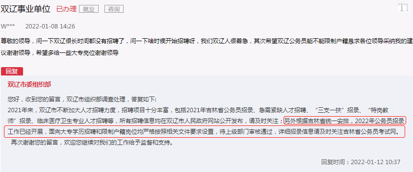 以下內(nèi)容及截圖來源于人民網(wǎng)-領導留言板-吉林?。?/p>