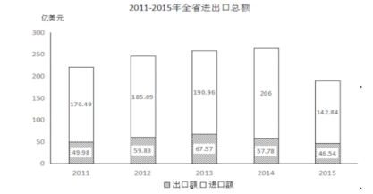 A、2011-2015年,該省的進(jìn)出口貿(mào)易總額的變化趨勢是先增后減