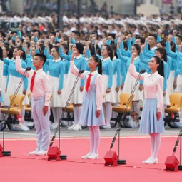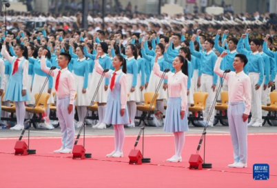 2021年7月1日上午,慶祝中國共產(chǎn)黨成立100周年大會在北京天安門廣場隆重舉行。這是共青團員和少先隊員代表集體致獻詞。新華社記者陳曄華攝