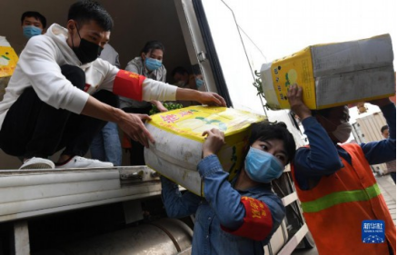 2020年3月3日,在廣西南寧國際鐵路港,南寧車務(wù)段“青年突擊隊”隊員黃瑩瑩(右二)在搬運廣西馳援湖北物資。新華社記者陸波岸攝