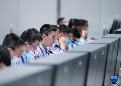 2021年6月17日,在北京航天飛行控制中心,科研人員在監(jiān)測神舟十二號載人飛船與天和核心艙自主快速交會對接情況。新華社記者金立旺攝