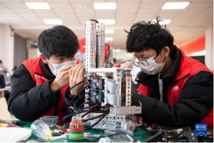 2021年12月25日,第三屆山西省職業(yè)技能大賽參賽選手在位于山西機械高級技工學校的移動機器人項目賽場進行比賽。新華社記者楊晨光攝