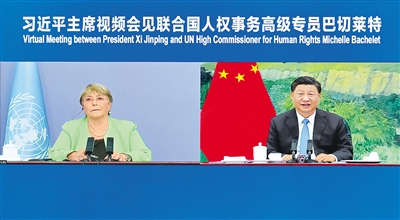 5月25日,國家主席習近平在北京以視頻方式會見聯(lián)合國人權(quán)事務高級專員巴切萊特。